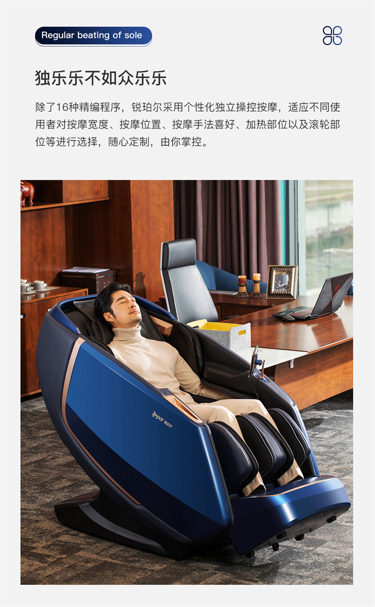 銳珀爾品牌是zoty中欧体育官方网站體育集團旗下的按摩椅品牌,自主研發(fā)并生產(chǎn),全國招商合作。